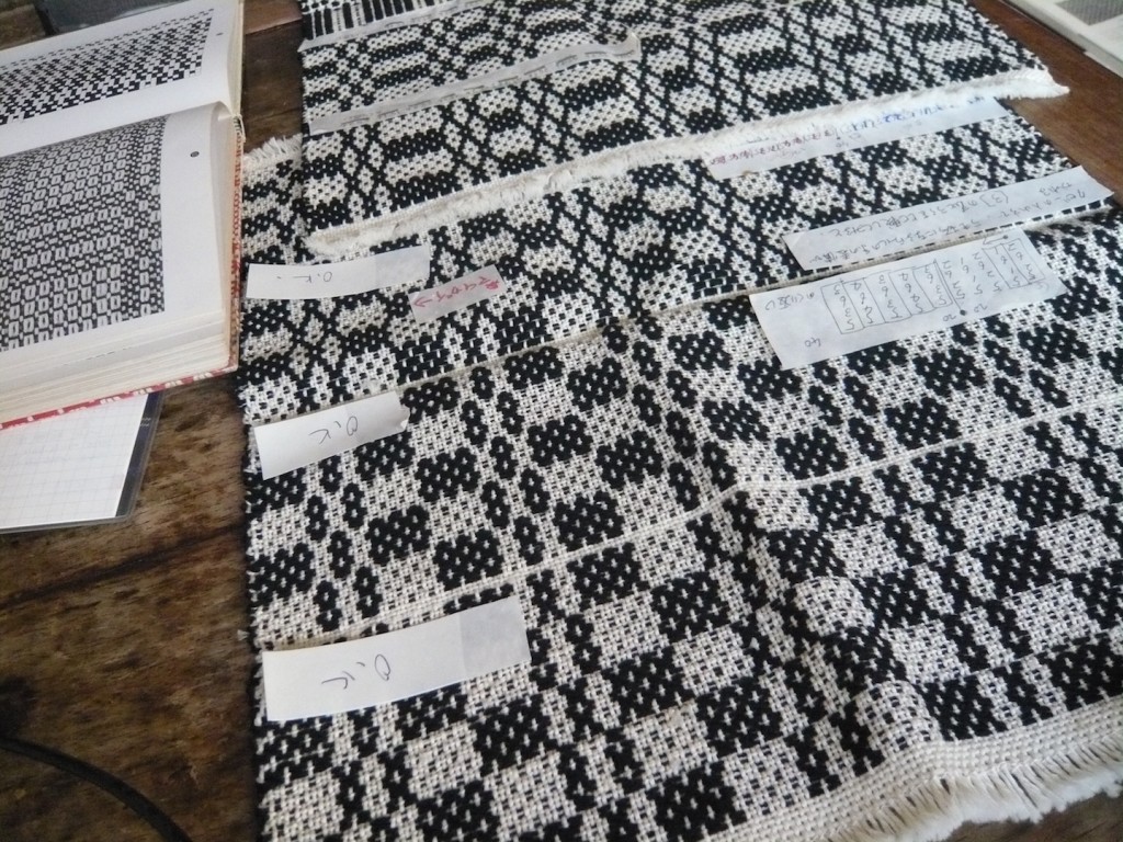 先日はサンプルで織った生地を参考にどのようなデザインにするかを相談しました。